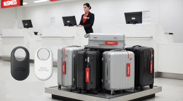 Les passagers fixent un Galaxy SmartTag à leurs bagages et peuvent partager en temps réel des liens de géolocalisation avec la compagnie aérienne en cas de perte.