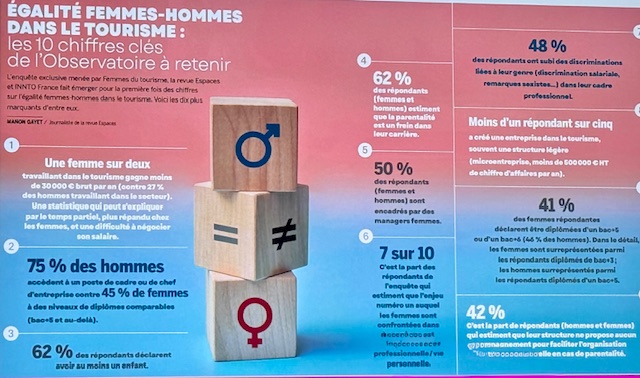 Ce premier Observatoire lancé par Femmes du Tourisme avec l’assistance de la revue Espace et des chercheurs de l’INNTO (réseau des instituts nationaux d’enseignement et de recherche en tourisme) est un choc visuel… et statistique.